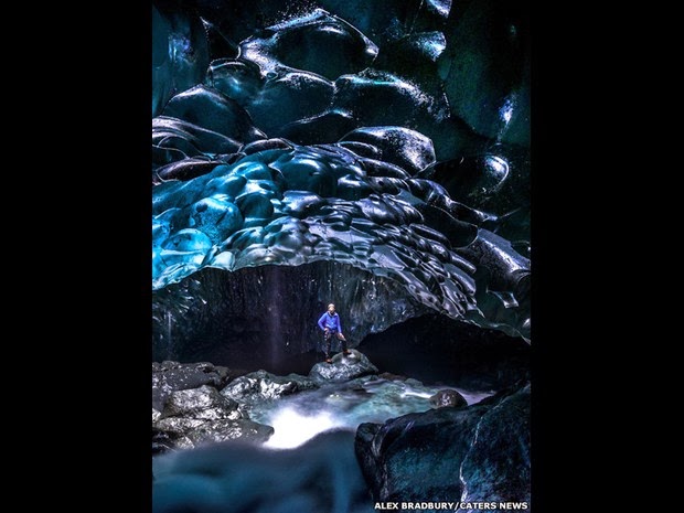 Alex Bradbury foi até parque nacional na Islândia; cavernas ficam abaixo de maior geleira do país.
